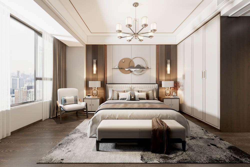 新中式風格是富含千年底蘊的東方中式風格與摩登時尚的現(xiàn)代風格彼此相遇結合,其精華之處在于以“一器一物皆是景,細微之處有乾坤”的古意為出發(fā)點,追隨時代的潮流,功能空間相互滲透,色彩空間相互碰撞,消除了傳統(tǒng)中式風格的沉悶和厚重,力圖在惹人癡迷的現(xiàn)代輕奢簡約中彰顯出傳統(tǒng)中式意蘊的雅致逸趣。